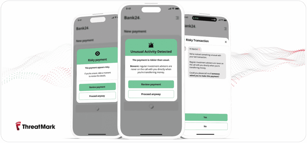 People interact with their banking app in consistent ways: the pace of their typing, their mouse dynamics, the way they scroll, where they pause. Over time, this becomes a clear picture of what “normal” looks like for them. When that rhythm suddenly changes, movements become hesitant or patterns look unfamiliar, it signals that something may be wrong. These small shifts often appear when a user is confused, under pressure, or being coached by someone else.